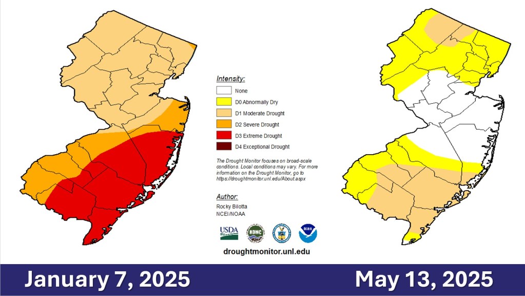 The United States Drought Monitor had at least part of the Jersey Shore in one of the four stages of drought until May 20. An ‘extreme drought,’ the second highest level of drought gripped Ocean County south to Cape May until early March.